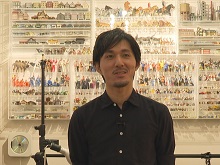 日常にあるさまざまなものとジオラマ用のミニチュア人形を組み合わせたアートを創作する田中達也さん38歳。