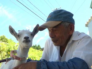 げんじぃは55年間社長を勤めた会社を70歳で定年退職、幼いころから親しみがあったヤギを飼うことを決意。「過疎化が進むふるさとをヤギと一緒に盛り上げたい」…そんな強い気持ちもあり2年後、たったひとりで吉がけ牧場を作りました。
